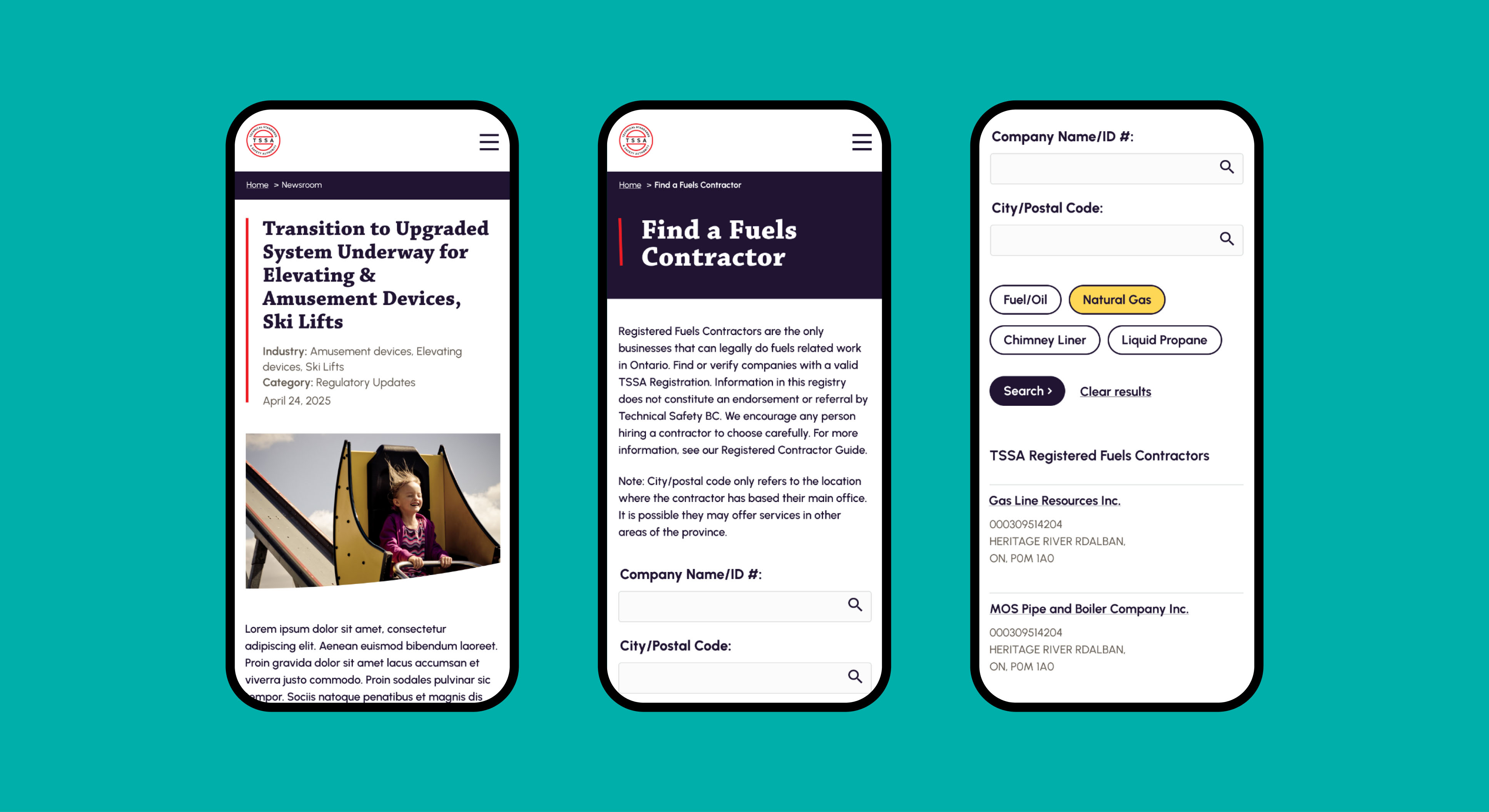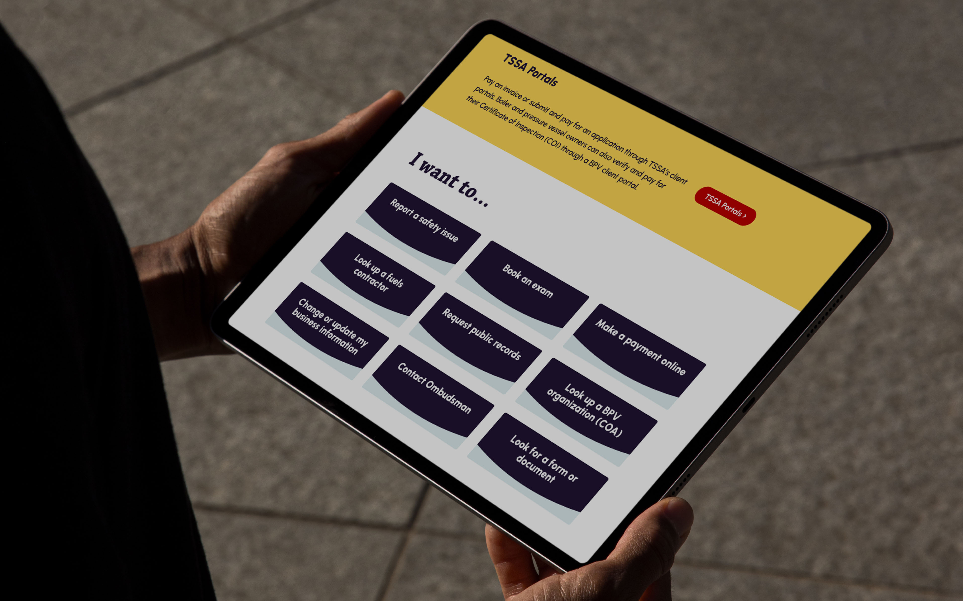 The Technical Standards and Safety Authority (TSSA) is a not-for-profit organization that oversees technical safety regulations in Ontario. To better serve regulated industries and the public, TSSA needed a more accessible, brand-aligned digital presence.