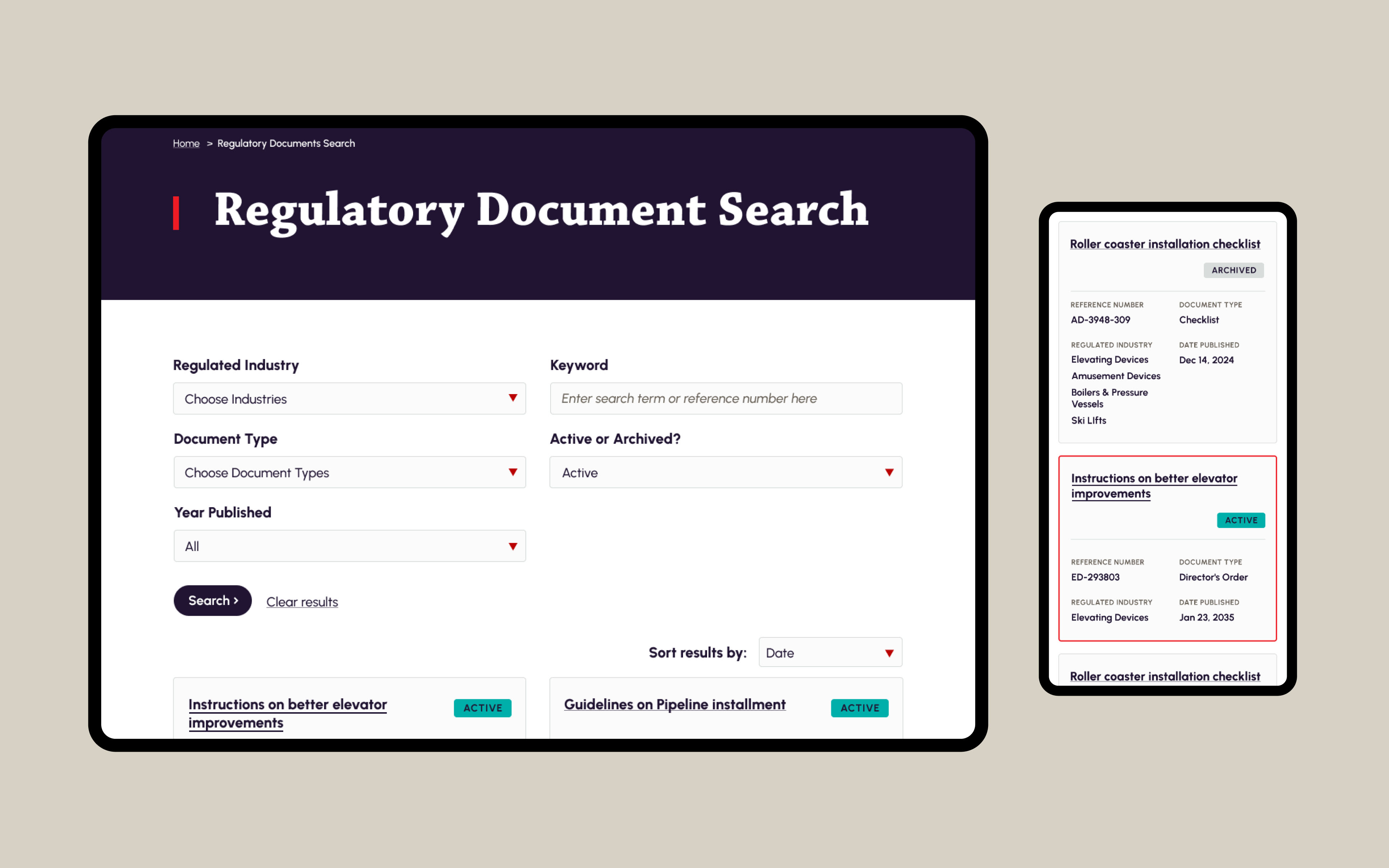 We designed targeted Hubs for key audiences—industry dashboards, consumer safety sections, and a legislation and enforcement area—to improve usability and access. We also helped launch two public-facing sites: cosafety.ca for carbon monoxide safety and safetyinfo.ca for general consumer resources.